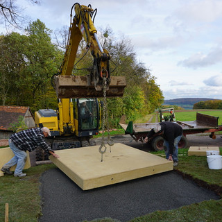 Am 2510.2017 konnten die Betonfertigteile für den Sockel verlegt und montiert werden.